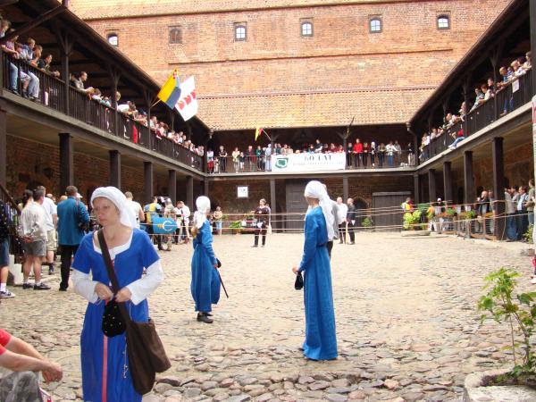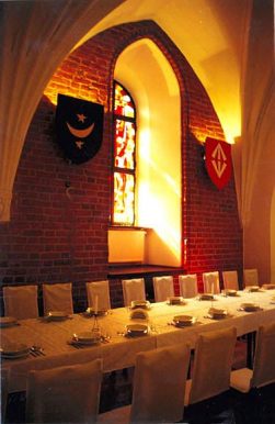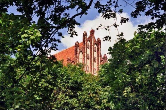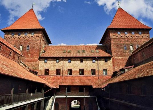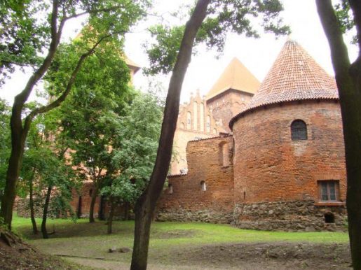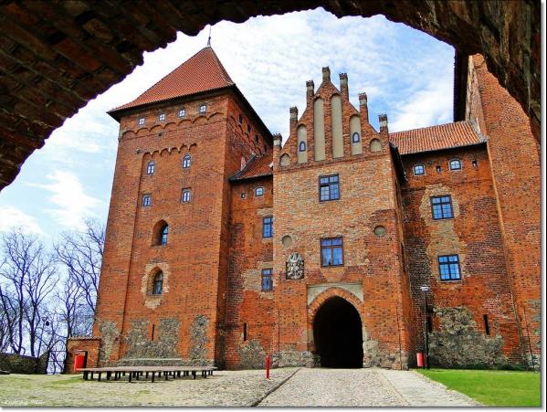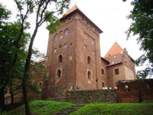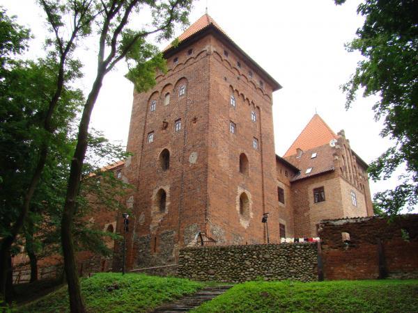 Zbudowany został na wzgórzu w końcu XIV wieku. Stanowił ważny punkt strategiczny w obronnym systemie krzyżackim.Kilkukrotnie przebudowywany w XVIII i XIX wieku. Zniszczony w czasie II wojny światowej, odbudowany w latach 1960-65. Imponująca budowla z czerwonej cegły w wieżami, basztami obronnymi i wewnętrznym obszernym dziedzińcem poprzedzony przedzamczem z murami i bramą wjazdową.