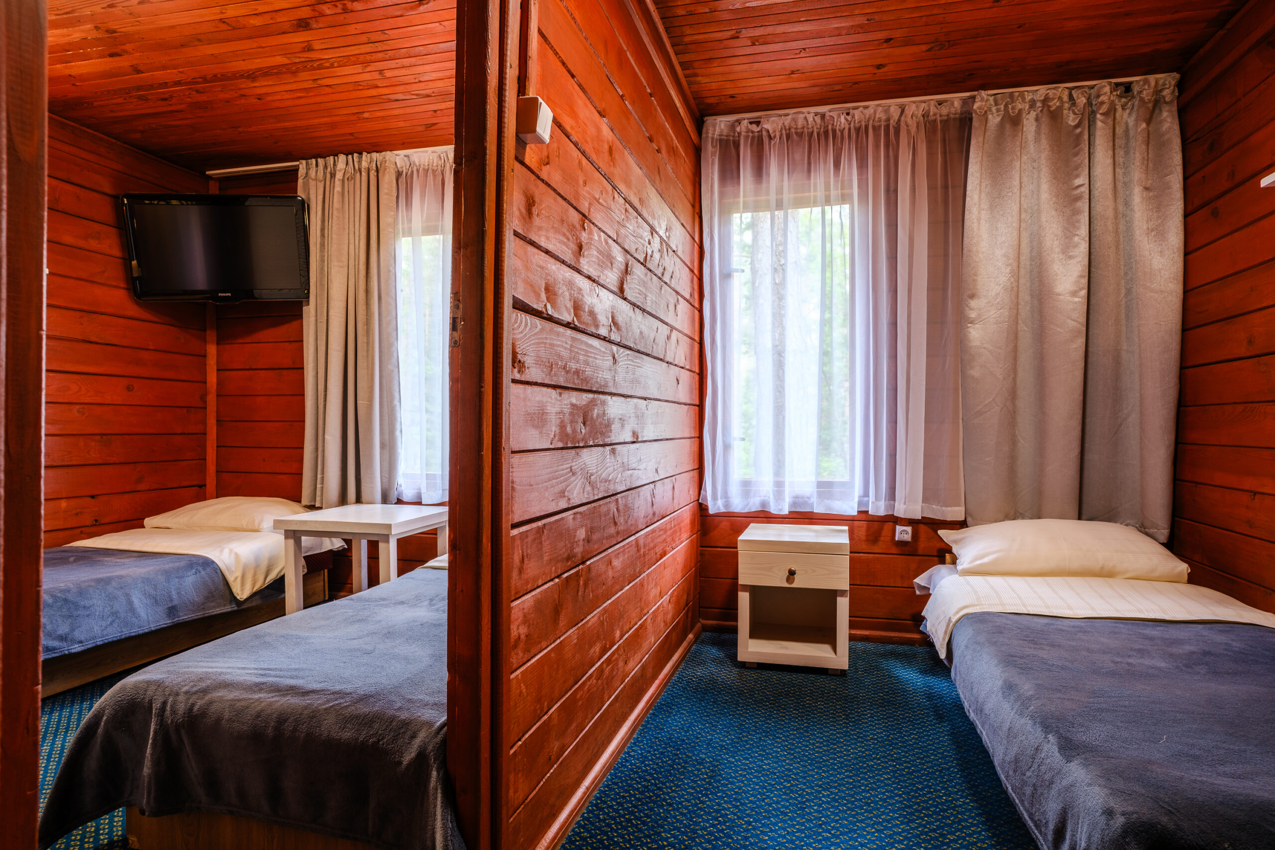 Na 3,4 hektarowym zalesionym terenie w otoczeniu pięknej Mazurskiej przyrody znajduje się 51 domków campingowych 4, 5 i 6 osobowych z łazienkami wykonanych z sosnowych bali drewnianych. Każdy domek wyposażyliśmy w mini lodówkę, czajnik elektryczny i TV. Cały teren ośrodka jest ogrodzony i oświetlony.